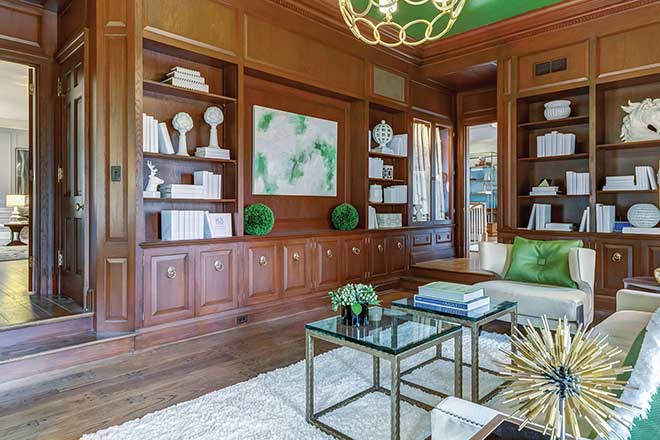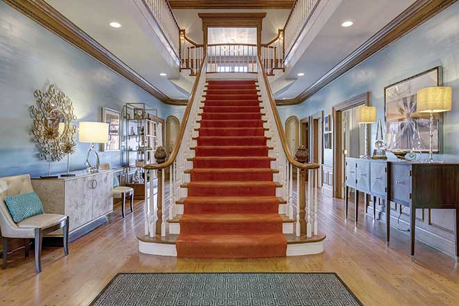 After designing plans and getting feedback from real estate firms, construction began to transform the home to its former glory as a Southern Colonial manse. “It was kind of a trainwreck inside,” Porter says. “We didn’t gut everything because there were tons of great features we wanted to keep, like the fabulous millwork and beautiful entrance staircase that makes you feel like you’re in Gone with the Wind.” Other things had to go, like the wallpaper covering every room and flooring that wasn’t level.