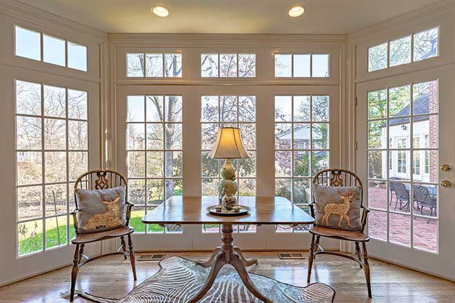 She says the home’s lovely family room has always been its centerpiece. “It has a great fireplace, and we put a harvest table, sofa chairs and lots of comfortable furniture in there,” she notes. “It really is where we live.” A large patio on the east side of the house is shaded all day long for al fresco dining, and Gladney says it’s been the site of memorable graduation parties, Father’s Day celebrations and more. There’s also a glassed-in sunroom where her family loves to relax, she notes.