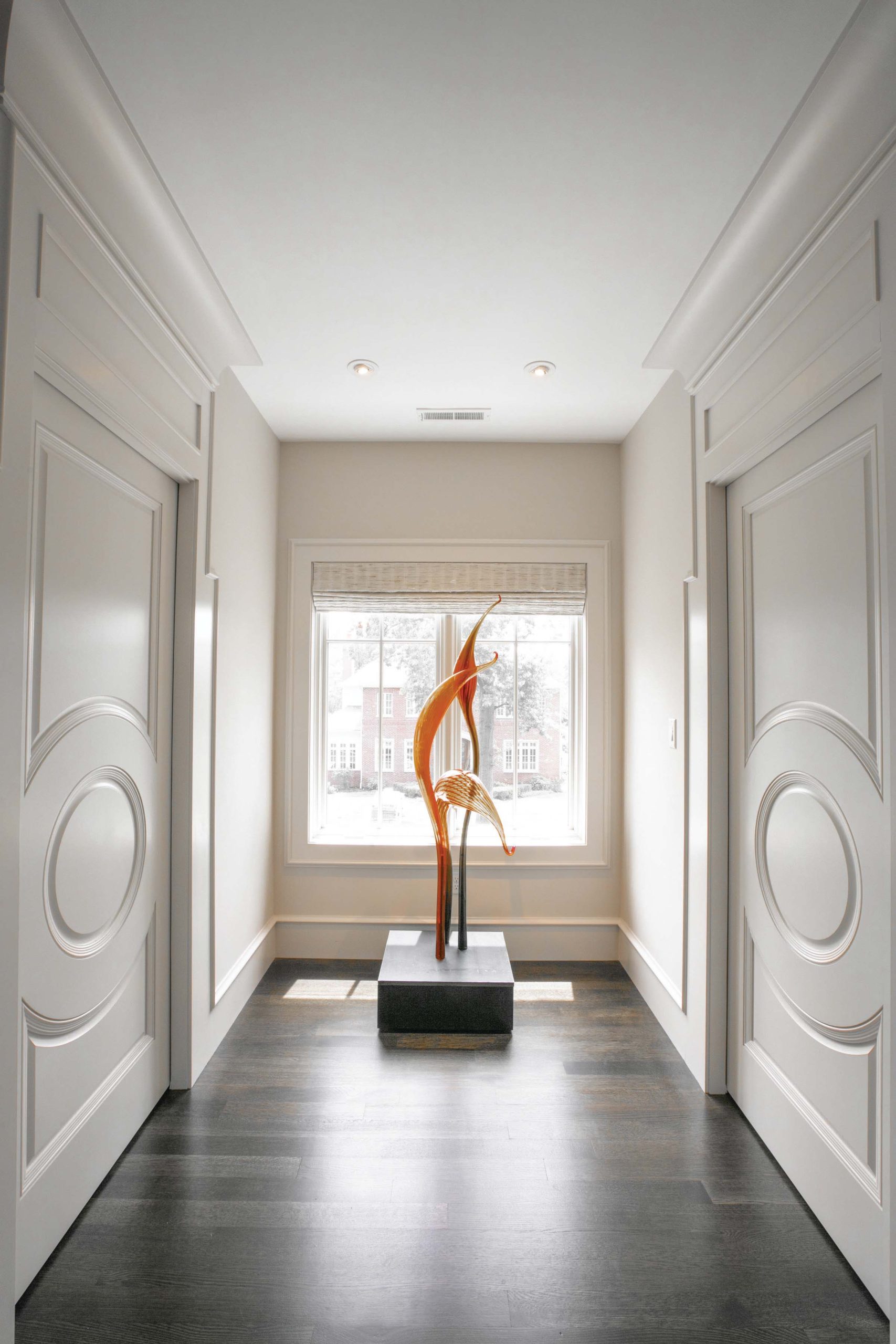 A big influence was the architect Frederick Dunn. We mentioned his name to Doerner, and it turns out that he was also very interested in and inspired by Dunn’s designs. That connection bonded us together, and a lot of the home is a reflection of our shared fondness for his work. I also worked as a developer for 20 years, building homes in Old Town Clayton. Our work was pretty innovative and was even featured nationally in publications like The New York Times. We tried to capture some of the design elements from those homes in the exterior of this one.