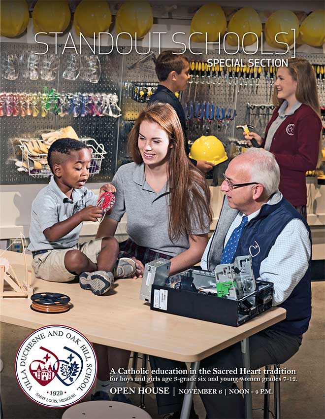 Villa Duchesne and Oak Hill School offers a Catholic education in the Sacred Heart tradition for boys and girls ages 3 to grade six, and for young women in seventh to 12th grades. pictured On the cover: Head of school Michael F. Baber with Oak Hill and Villa Duchesne students in their new makerspace, a workshop for students to encourage creativity, critical thinking, innovation and teamwork. For more information or to schedule a private tour, call 314.810.3566 or visit vdoh.org.