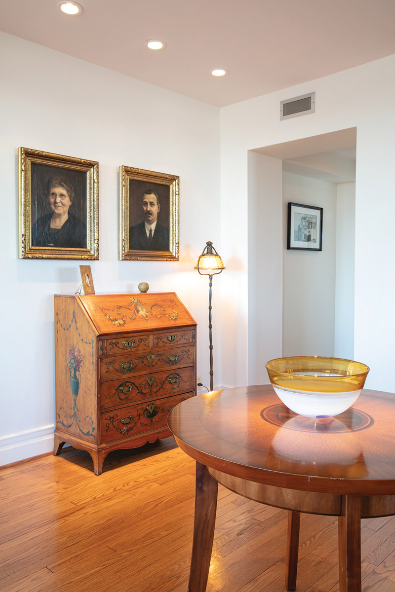 AT | All I ever wanted was a doorman and a heated garage. But joking aside, we wanted a high-rise because it really fits our lifestyle. One of my prerequisites was that we could modify the unit to fit our lifestyle. This building is an excellent example of Tudor Revival architecture and exemplifies the fashionable apartment buildings of the 1890s to 1940s. The apartments are old, but the concrete form construction and layout make it possible to adapt them to contemporary living styles. My parents were New Yorkers, and we like to think of this as our Fifth Avenue apartment—but at a fraction of the cost!