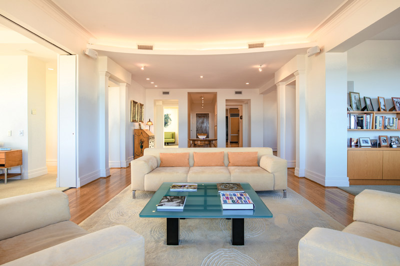 AT | We created a 3-bedroom, 4-bath home from a 6-bedroom, 5-bath unit. One bedroom became a master bathroom, another the family room. We wanted to gain additional entertaining space and open up the views, so we added a retractable wall to the master bedroom. Since the building was built in the 1920s, there was a galley kitchen that wasn’t meant to be seen. Today, the kitchen is the focal point of any home, so we opened up the space. My wife loves to cook, and it’s often a place where we gather while entertaining. We turned what was originally the maid’s quarters into the new kitchen.