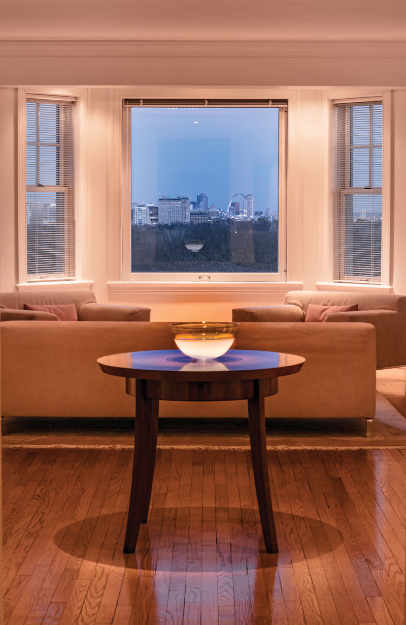 AT | When I came to look at the building, I remember seeing the views and thinking, “This is where I need to live.” All of the condos in the building have windows on the east side that overlook Forest Park and provide views of downtown and the Arch. Since we remodeled and opened the space, our views have gotten even better. Standing in the living room, you can see the park and Arch to the east, Washington University to the north and the Hi-Pointe district to the south. It’s magnificent!