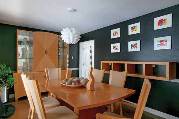 SZ | I’ve always been into design. My parents raised me to appreciate mid-century and modern aesthetics, and I love artists like Matisse and Calder. I’m really attracted to color, but I’ve been doing more things in black and white. I can appreciate other types of art like pastels, but bold prints and full-depth color appeal to me, even with neutrals. My bedroom is almost completely black and white; it’s a more calming palette, but it still makes a bold impression. Everyone thought I was kind of nuts when I painted everything but the trim in my dining room black, but I love it! Take risks if you can. There’s almost nothing you can’t undo. In my design work, I like to push people to do something unexpected. Everything doesn’t need to be traditional and done in ‘blah’ color palettes. Homeowners shouldn’t be afraid to try something new. I do a lot of murals, including large-scale ones around St. Louis. Outdoor and street art are things I’m trying to instill in our city. I also am collaborating with the Saint Louis Fashion Fund. Color, texture, textiles, street art—they all get my creative juices flowing. I’ll wake up in the middle of the night and go to my studio. It’s a blessing and a curse, having it in my home.