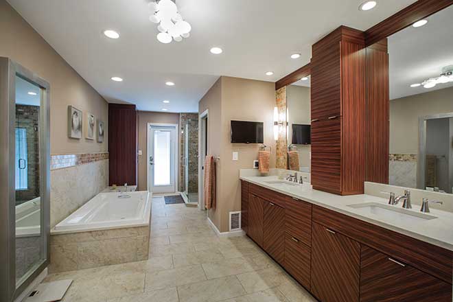 TN | The master bathroom. The previous owners had just redone it, and it’s very spa-like and tranquil. I also really love the back deck. You can get to it from the master bedroom and the living room—both rooms have double doors that open out to the deck. I put in an outdoor TV and a hot tub, so I can sit out there at night, smoke a cigar and watch Sports Center.