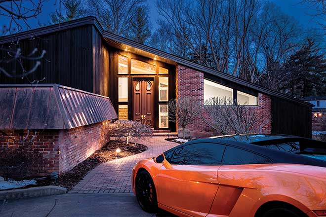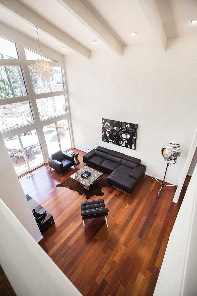 When attorney Travis Noble first saw the Ladue home he purchased last August, he was immediately taken by two things: its unique design and its master closet worthy of housing his carefully curated wardrobe. He shares the home with two daughters, 10-year-old Sydney and 5-year-old Victoria, as well as his girlfriend Phelan and three dogs, which explains its blend of