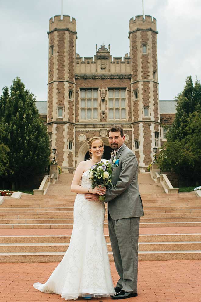 Cowhey was thrilled, and the wedding arrangements began. The two, who met at a 2011 World Series party in Illinois, consulted on all the plans, but Cowhey took the lead since Oehlerking still resides in Columbia, Missouri. Long distance never proved a challenge for the two, however. Even after the wedding, they are navigating the issue as Oehlerking works to transfer to his office’s St. Louis branch. “It doesn’t feel too much different to be married right now, but when Matt moves here, it will really hit home that things have changed,” Cowhey says.