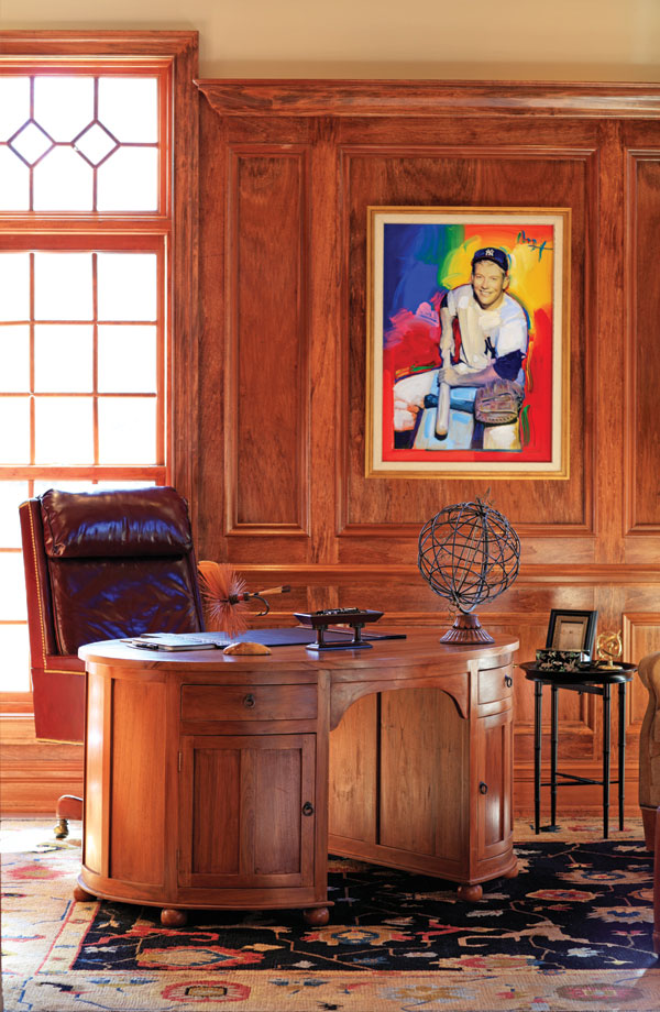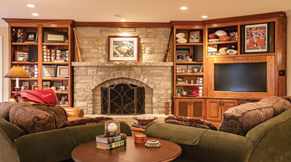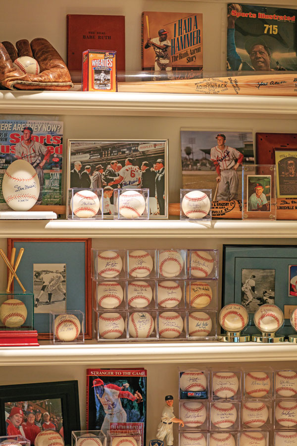 A | Collecting sports memorabilia is my husband’s favorite hobby, and there’s not much I can say about it! The lower level is like a sports museum except for my sewing room and our grandkids’ playroom. That entire level is a really great space in general because it’s a walk-out. The back is all windows so you don’t feel like you’re in a basement at all.