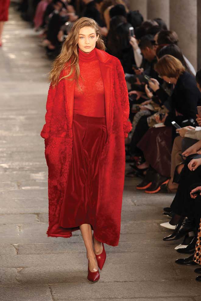 Coats can be dramatic, and this one will certainly turn heads. Shearling provides extra warmth, and you’ll definitely be ‘on fire’ wearing it in red.