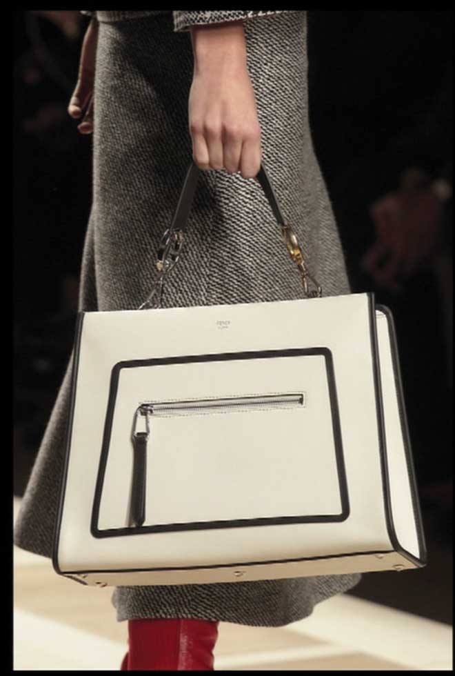 Architecturally speaking, handbags are designed with character. Zip it up with this one from Fendi.