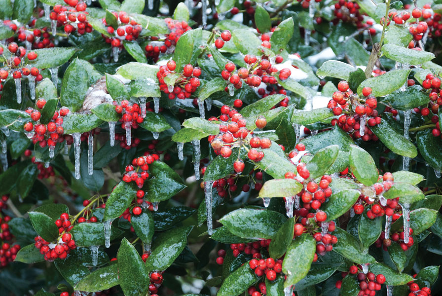 Arborvitae can withstand the weight of ice and snow. I recommend the Emerald Green variety, which holds its color through winter; foliage of the Green Giant tends to bronze when the temperatures drop.