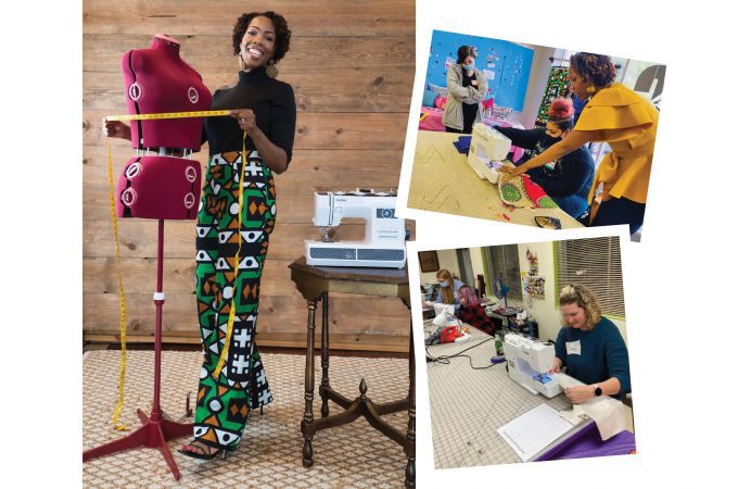 We offer kids and adults sewing and quilting classes, and there are one-day classes to teach people how sewing machines work in case theirs is broken or they’re having trouble with it. We also host sip and sew parties and have therapy groups for women who have been impacted by the criminal justice system. We offer space for designers and at-home sewers who need a large workplace, and our monthly memberships give people unlimited access to our fabric and notions. We also sell fabric for three dollars a pound, which is a big discount. Every month, we will do a service project, so our sewers have the opportunity to use their skills to give back to the community.