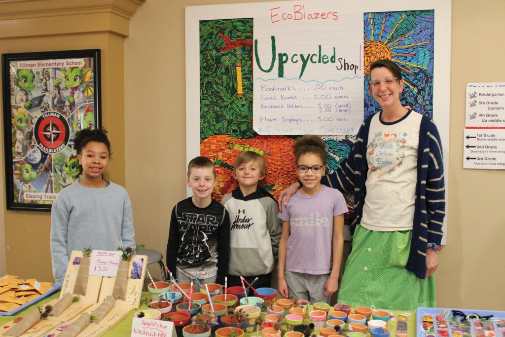 The EcoBlazers Club held an Upcycle pop-up shop. It sold bookmarks, seed bombs, knickknack holders and dried flower vases made from reused and repurposed items, offering students the opportunity to learn about eco-friendly practices. The club, which is in its first year, is overseen by kindergarten teacher Stephanie Nickolotsky. It meets twice a month and also oversees the elementary school’s green spaces.
