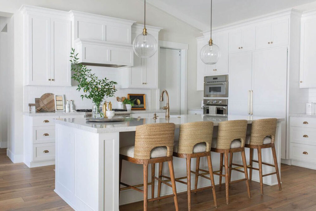 After designing three homes for our growing family, I learned that I love the feel of a bright and airy space, but I also want that space to feel comfortable and cozy. After lots of trial and error (with paint, dark cabinets, bulky and dark furniture), I learned bright/airy and cozy/comfortable can be achieved with the finishing touches—pillows, throws, baskets, paintings and interesting objects. By keeping the overall design neutral, I can layer in these additional textures for a comfortable and inviting space.