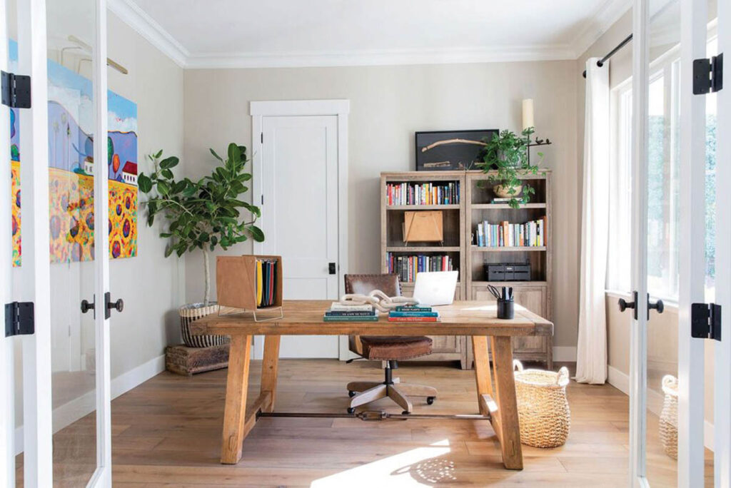 Around 90% of the art on the walls of the Ranch House are from local Sacramento artists. When working with a client to curate art, I want to know what speaks to them—what styles they like, what they envision in their own homes and what artwork stands out in their memory. For example, at the Ranch House, we talked a lot about growing up boating on the river, so I found a piece by Richard Stein that shows the beautiful curvature of the Delta and surrounding fields.