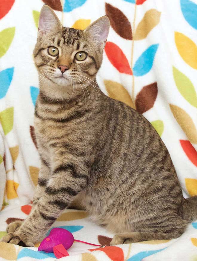 Hi there! Interested in a friend? I’m Peyton, a 6-month-old male brown tabby. My six siblings and I were born at a rescue group, where we are waiting to meet our family and find a lifelong home.
