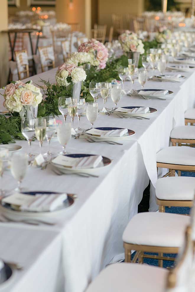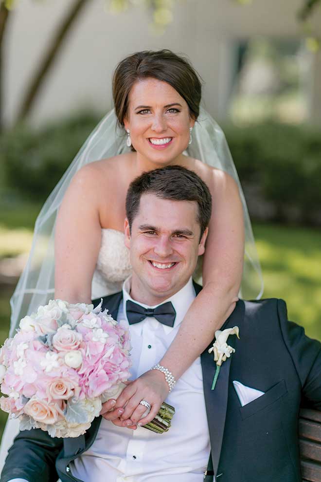 Since they had numerous out-of-town guests (Steve is from Chicago), they planned an entire wedding weekend to spend time with everyone. “Steve’s dad passed away while we were engaged, so all the guys played golf in honor of him on Saturday morning,” Elizabeth says. “And his mom, sister and I all carried pictures of him on our bouquets.” The “action-packed weekend” ended with a Kentucky Derby party hosted by Elizabeth’s parents Saturday night and Mother’s Day celebrations Sunday.