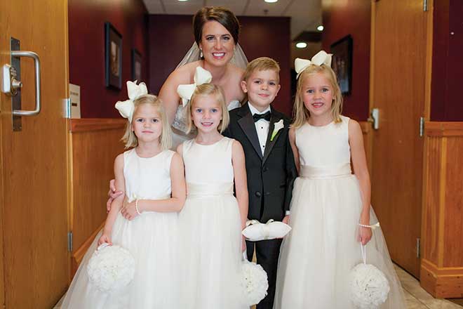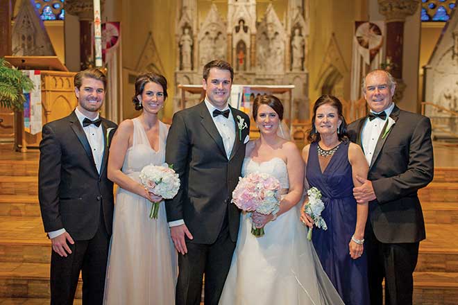 Elizabeth Clote and Steve Lillis envisioned a classic, elegant wedding that focused on family and included personal touches. It came to life in May, when Elizabeth walked down the aisle of St. Francis Xavier College Church on Saint Louis University’s campus, where she and Steve met in law school. “We knew of each other but didn’t start dating until our second year,” Elizabeth says.