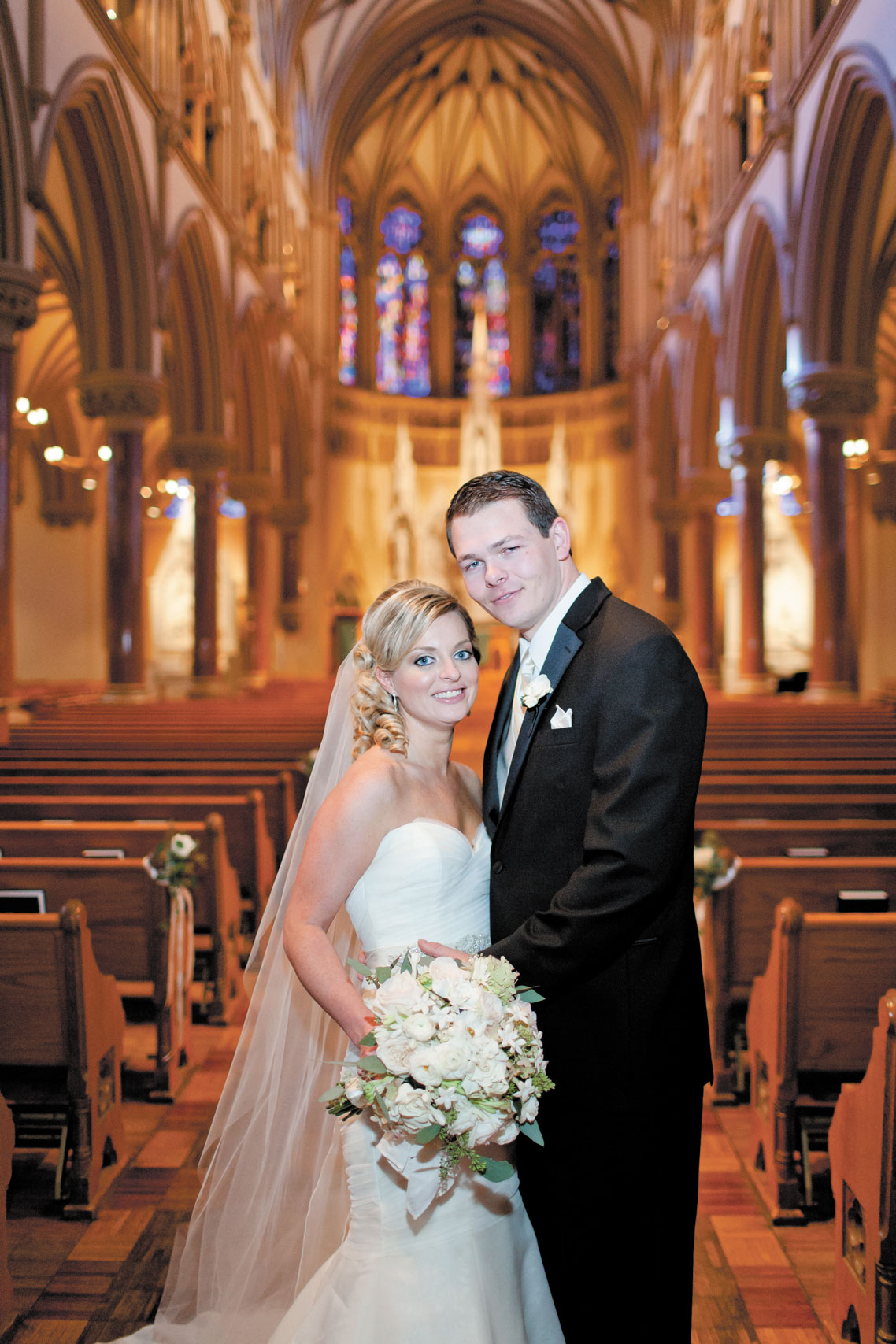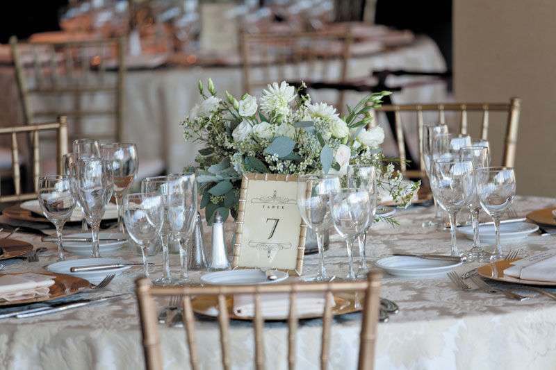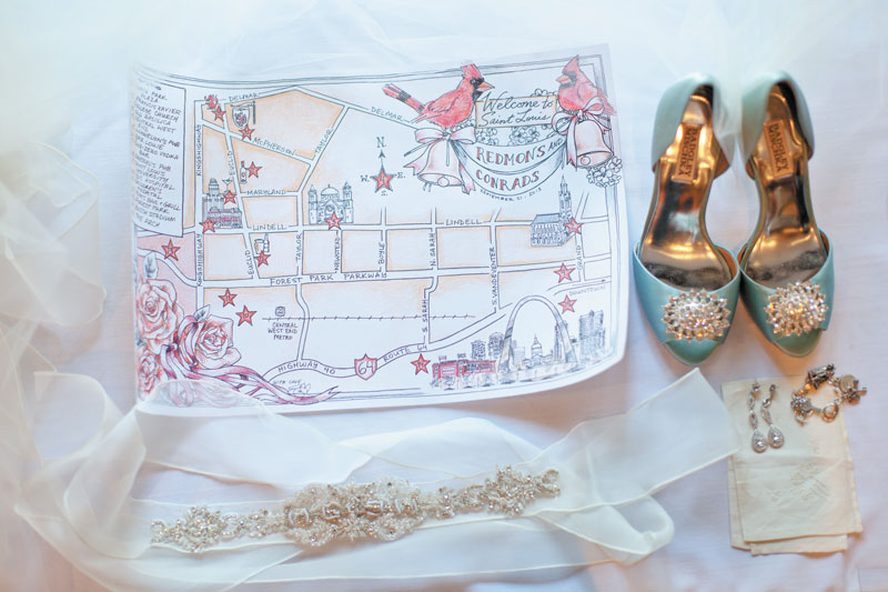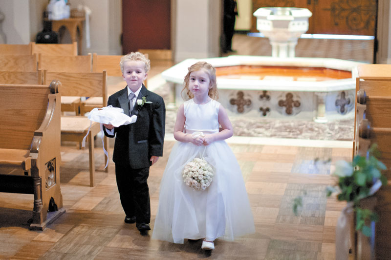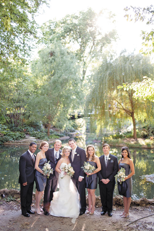 The couple exchanged vows at St. Francis Xavier College Church, which Meredith attended growing up. The officiating priest was Meredith’s great-uncle, who also married her parents and grandparents. Although it was pure coincidence that the Balloon Race took place on the same weekend, it added to the memorable evening. “The Chase has these big, beautiful terraces with views of downtown, the Arch and Forest Park,” Meredith says. “Everyone came to the reception early so they could watch the balloons take off.”