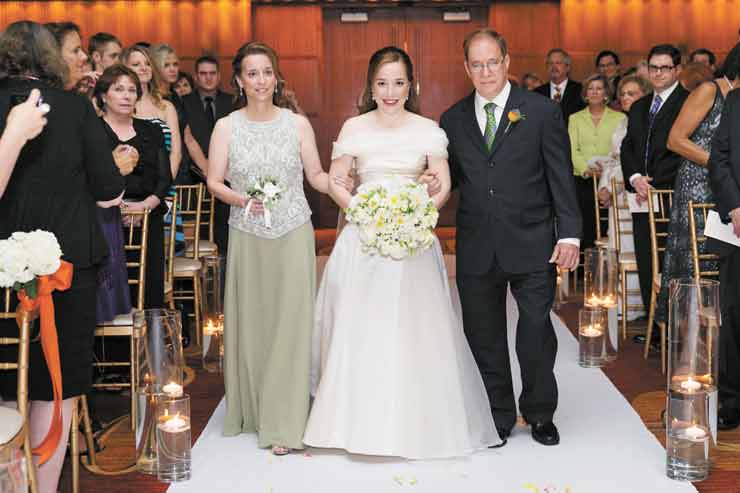 The couple’s ketubah—the marriage contract signed by Jewish couples—was special, too. It was designed by artist James M. Smith, who is represented by Peter’s mother. “He’s an unbelievable local artist, and our ketubah is both functional and a piece of art,” Peter says.