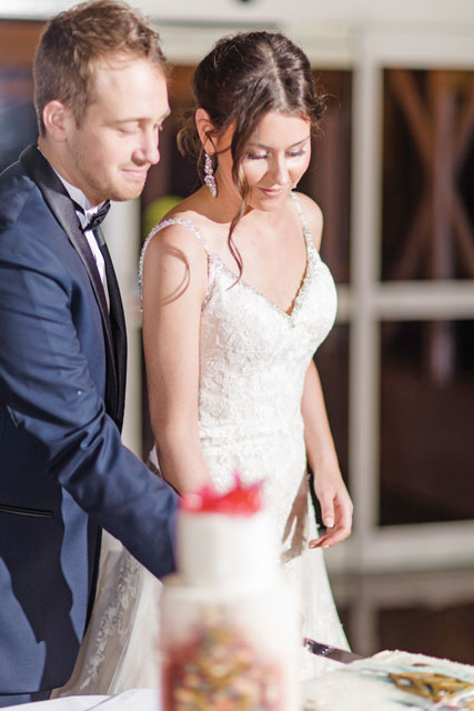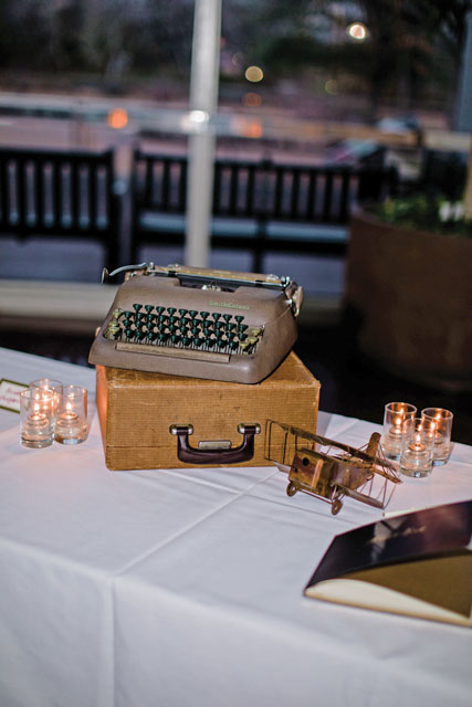 Luke is a fiction writer and poet, so the reception decor included items like an old-fashioned typewriter and books by authors like Neruda and Faulkner, plus a small model plane to symbolize the pair’s love of travel. “Three of our grandfathers have passed away, so we remembered them with special seats left empty at the ceremony,” Luke says. “We put their photos on each chair, and it really felt like they were there with us.”