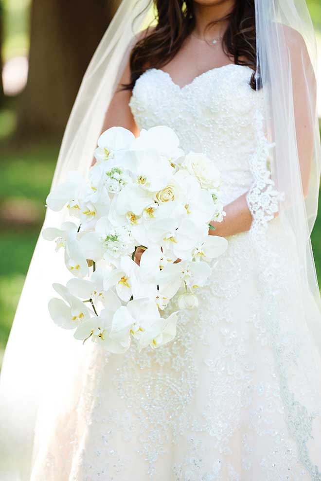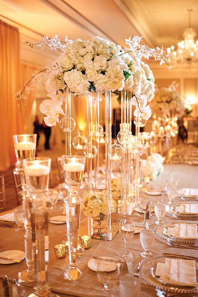 Both the wedding and reception were held at The Ritz-Carlton, and Morgan says everything went smoothly from start to finish. She worked with wedding planners at Cosmopolitan Events to pull off the big day, which included a short ceremony and special Jewish traditions. A white and gold color scheme included lovely orchids as part of the decor.