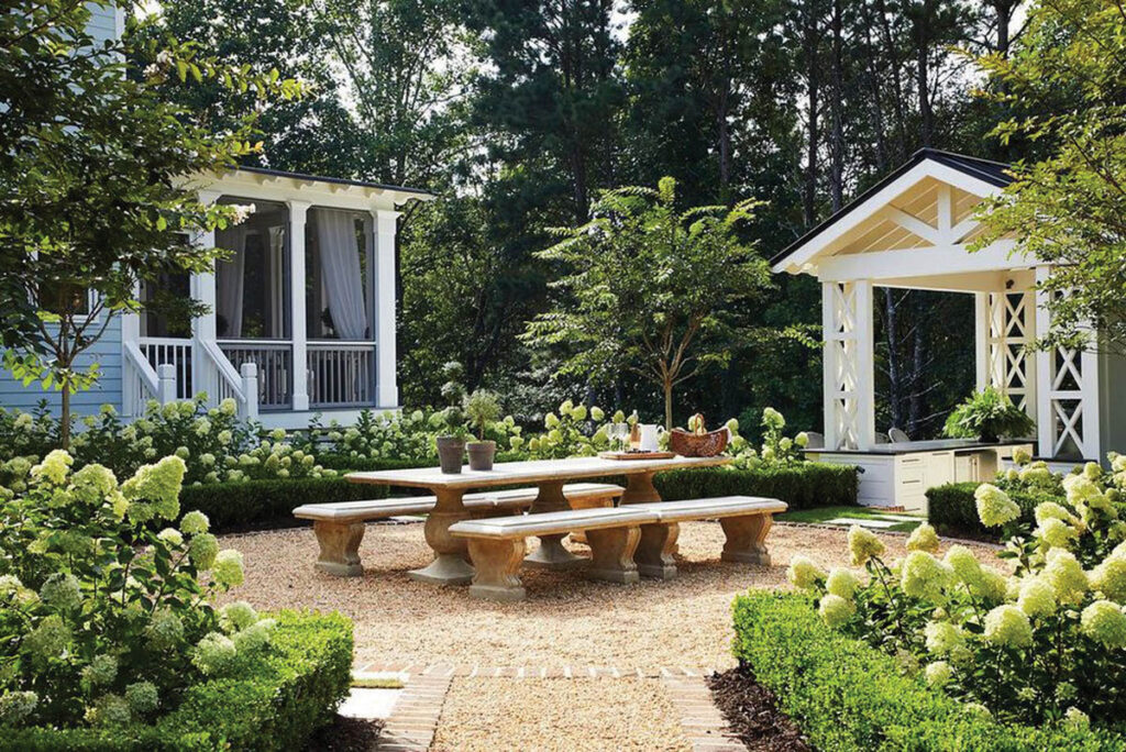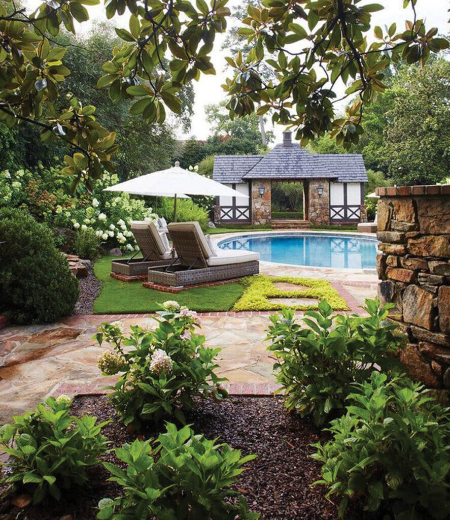 One of my favorites was for a family member outside of Atlanta. It’s a very unique, really beautiful pool, outdoor kitchen and dining terrace in a beautiful setting on a small farm. The project flows so well and fits the family so well. The bricks that line the courtyard are from an old general store that was across the street. The family uses it like we built it—to entertain, relax and enjoy. It was fun to see the project come to life.