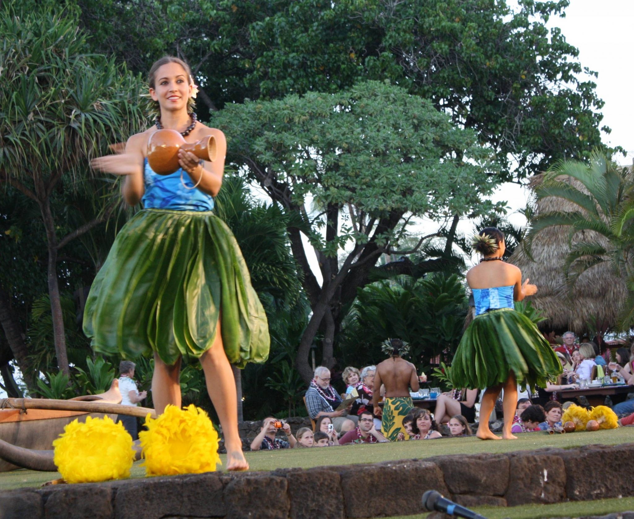 Dancers take the stage to tell Hawaii’s history through hula, each performance representing part of the archipelago’s past. Accompanied by the pahu, or drum, women and men wearing feathers and grasses portray ancient myths about Pele the Fire Goddess. Another dance commemorates the late 19th century, when King Kalakaua restored hula after missionaries banned it. A third performance draws on the idealized fun of Hollywood Hawaii, when Elvis films and tiki drinks thrilled mainlanders in the 1960s. The dancers end the evening with a traditional piece, underscoring their pride in their Polynesian roots.