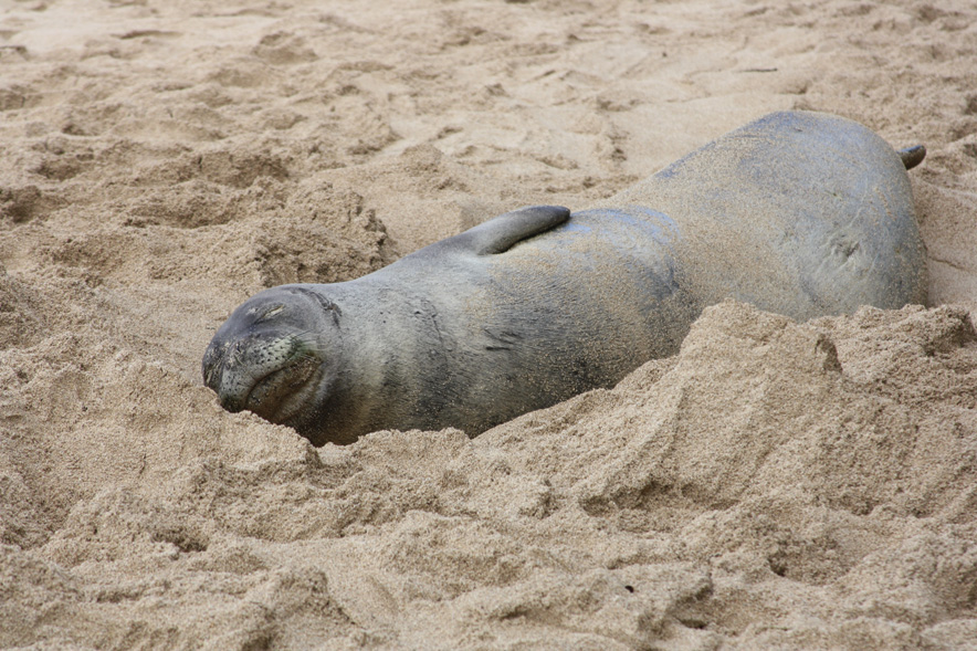 Here, nature is gentle. Indifferent to our company, a pregnant Hawaiian monk seal sleeps in the sand. A snorkeling session rewards with visions of angelfish, butterfly fish and yellow tang darting among the rocks. Purple sea urchins flare and retract their spines. Turning around, I’m startled by a honu, a Hawaiian green sea turtle, who stares for a moment before swimming toward the bottom and out of sight.