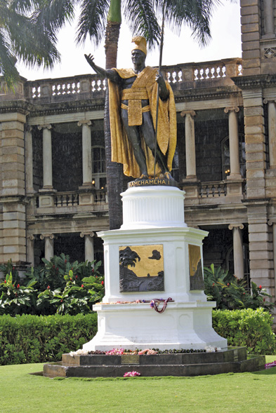 A half-hour drive east takes us to Honolulu. Amid the island’s lush scenery, the city’s high-rises seem out of place—but this is America, after all. Atop a pedestal, the majestic King Kamehameha looks out at Iolani Palace, where the last two Hawaiian royals lived from 1882 to 1893. Medals from foreign countries hang in the throne room, testaments to the interest world powers traditionally have shown in this land of sugarcane and coffee—interest that often clashed with natives’ own. As a poignant audio tour explains, in 1893, American businessmen and sugar planters hoping to expand their political and economic power deposed Queen Lili‘uokalani and imprisoned her in her own palace. Five years later, the U.S. annexed the kingdom.