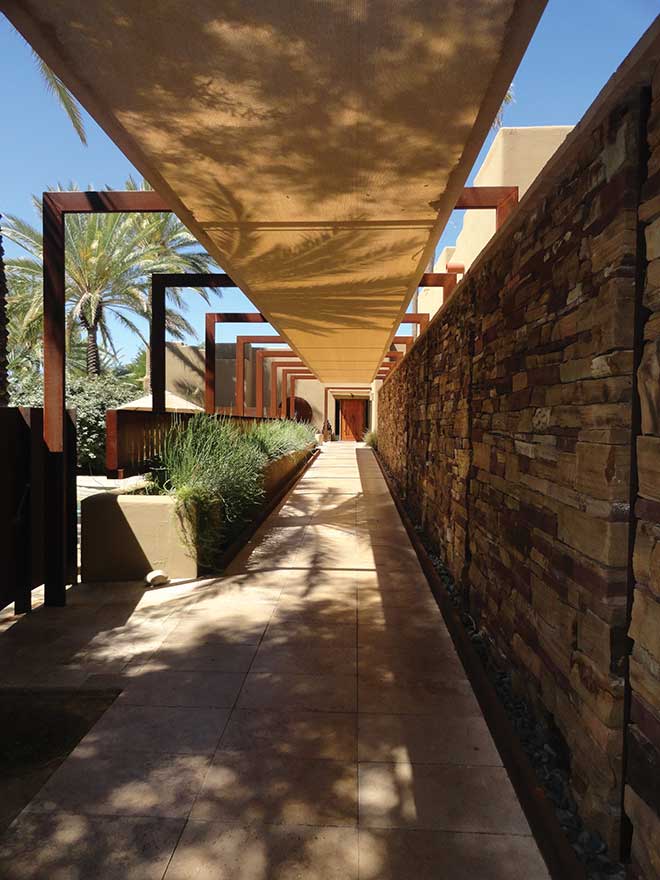 Today, Miraval is both the same and different as it was my first trip. For one thing, the spa has changed ownership—it’s now part of the Hyatt company. For another, projects that were in the works during former visits are now complete, including a beautiful, Zeninfused spa building with expansive views of the Catalina Mountains. It’s hard to beat the experience of gazing at that view while cocooned in a robe and on a chaise lounge. Then there’s the elaborate series of waterfalls and trickling brooks that lull you with their serenity wherever you stroll. The restorative power of water—and Mother Nature in general—is everywhere here.