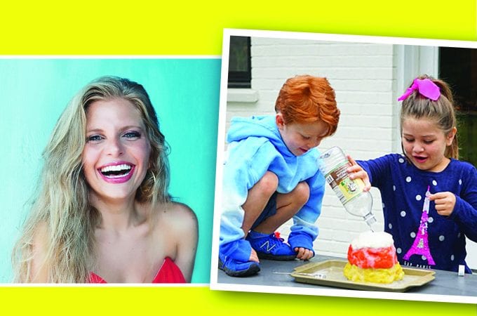 This month in My Messy Mom Life, we tried an age-old kitchen experiment that is so easy, even I can pull it off. We made baking soda and vinegar volcanoes with ingredients from the dollar store. We even made them candy corn-colored to add a little seasonal spirit. Thanks to my friend Amy for inspiring this great activity!