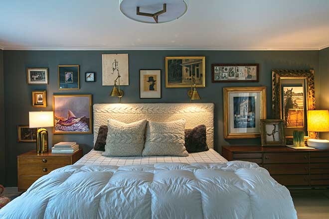 My parents and I used to have an antiques store, The French Wench Antiques, so we would travel to France to find antiques and architectural pieces for it. The ones I loved always got a higher price tag so I could inherit them! My husband also grew up with an appreciation for art and has some artwork and furniture pieces that were passed down from his grandma, like the grandfather clock in our bathroom. The doors to our bedroom are from the Admiral, St. Louis’ iconic riverboat back in the day. My grandparents actually took their honeymoon cruise on it! I found the doors on Craigslist in a barn in the middle of Illinois.