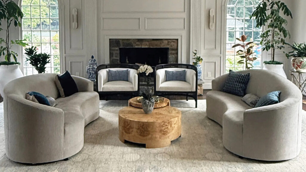 Curved furniture really throws me when shopping, but when you see it placed perfectly, it is a winner.