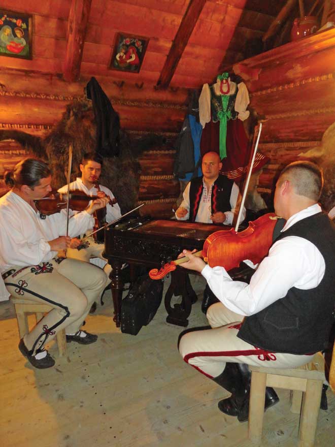 From Krakow (pronounced Kra-kouf in Polish), our Insight tour took us south toward the Slovakian border, where Poland and Slovakia share the scenic Tatra Mountains, the highest range in the Carpathians. There, we spent the night in Zakopane, a resort town in the highlands renowned for its carved-wood, Alpine-style chalets. The mountain folk are called Gorals, and they have their own dialect, music, food and dress, all of which we got to experience firsthand during an evening at Bakowa Zohylina Wyznio a mountain dining lodge that was covered, wall-to-wall, with mounted animals indigenous to the region (including bear, wolf and lynx).