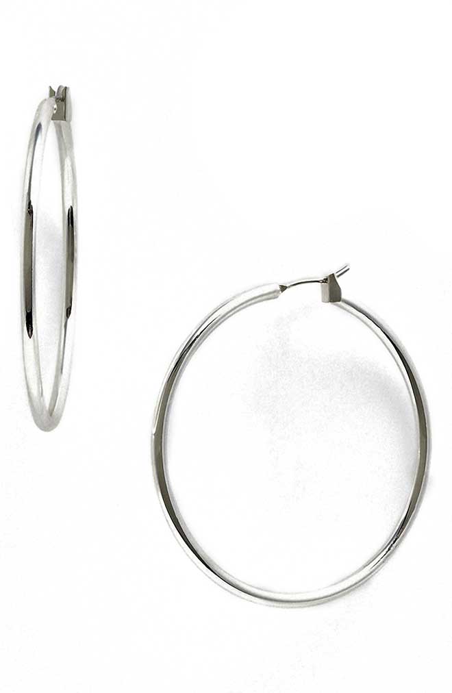 Bry Loves It Because: “Shiny shoes and earrings are the perfect accessories for this jeweled gown. I especially love the hoop earrings because they are understated but still elegant and will look great with an updo!”