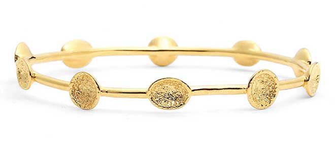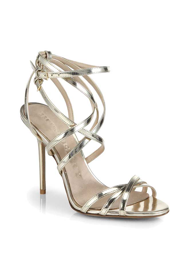 Jovani gown ($640, Distinctions); Burberry Alyssa Metallic Leather Sandals ($725, Saks Fifth Avenue); Anne Klein Large Hoop Earrings ($18, Nordstrom)