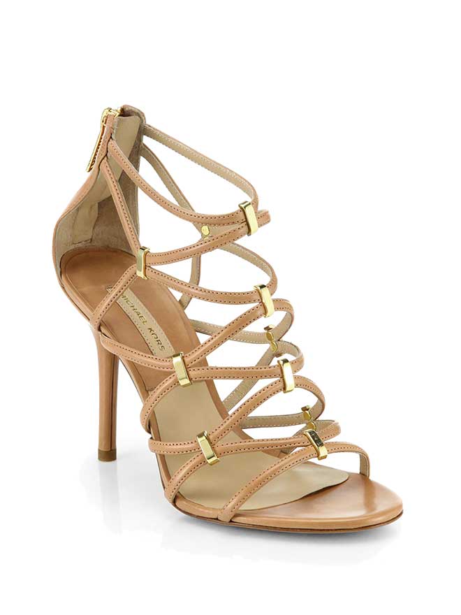 Elizabeth and James Magdalena Fit-and-Flare Dress ($365, Saks Fifth Avenue); Michael Kors Charlene Leather Sandals ($495-$550, depending on color, Saks Fifth Avenue or Neiman Marcus); Kate Spade New York Balloon Bouquet Cluster Necklace ($248, Neiman Marcus)