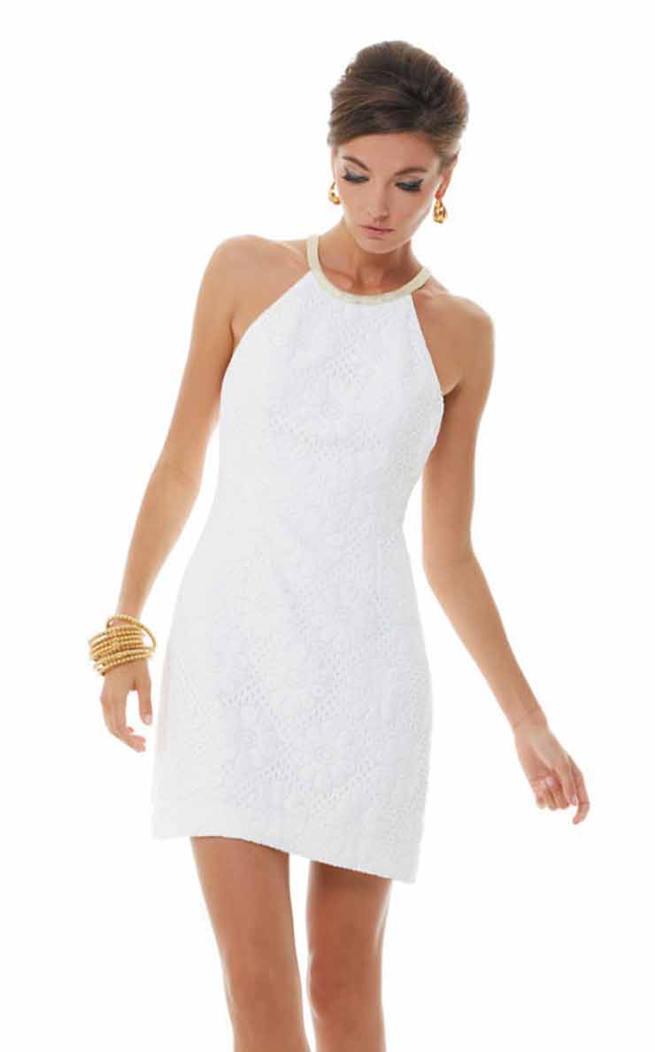A white dress serves as a clean backdrop for funky accessories like jewel-tone shoes and chunky bracelets. Plus, it’s a great way to show off a tan!