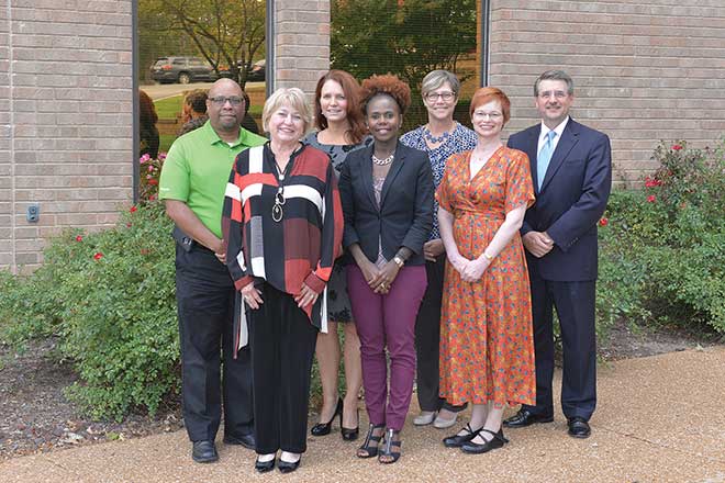 Purina Petcare; Barbara Westland, BJC Hospice; Elizabeth Sergel, Visiting Nurse Association of Greater St. Louis; Monica Campbell, Enterprise Bank & Trust; Stephanie Rohlfs-Young, Alzheimer’s Association; Louise Meret-Hanke, Ph.D., Saint Louis University; Terry Stilt, Edward Jones. Not pictured: James Brasfield, Ph.D., Webster University; Kelle Bub, AIG; Tim Effinger, ComForCare Home Care; Lynn Potts, Batesville Casket Company; Laura Wasson, Tech Electronics