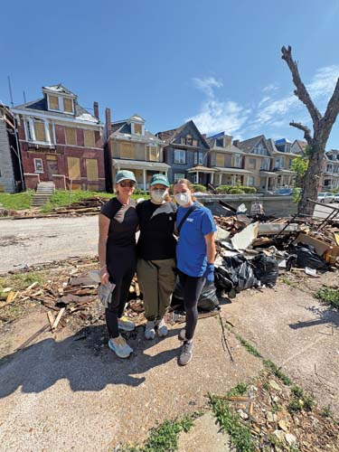 The F3 tornado that ripped through St. Louis that day was not Rand’s first brush with a natural disaster. She and her family were living in Florida when Hurricane Irma hit in 2017. Even though that storm was a Category 5, she notes that the impact didn’t compare to the devastation she saw following the tornado. “Trees were ripped out of the ground, cars were thrown and walls were destroyed,” she says. “With a hurricane, there is so much forewarning and time to prepare. A tornado doesn’t over that—it literally drops on you out of the sky.”