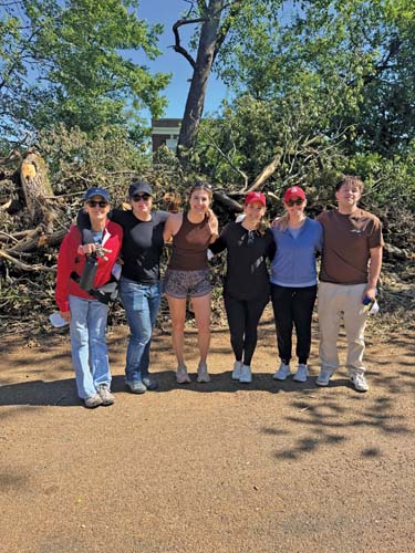 “So much destruction happened further north, and that’s where I saw resources going, which was definitely needed,” she says. “However, there was so much devastation in the central corridor, especially in the Academy neighborhood, but I wasn’t seeing a lot of relief effort.” On the Sunday following the tornado, Rand organized a group of volunteers through Forsyth School to start cleanup efforts, but quickly realized it would be a much bigger undertaking than she expected. Rather than a weekend project, it turned into a weeks-long campaign. She started using her social media to spread the word and to raise money to pay for machinery, dumpsters and other necessities.