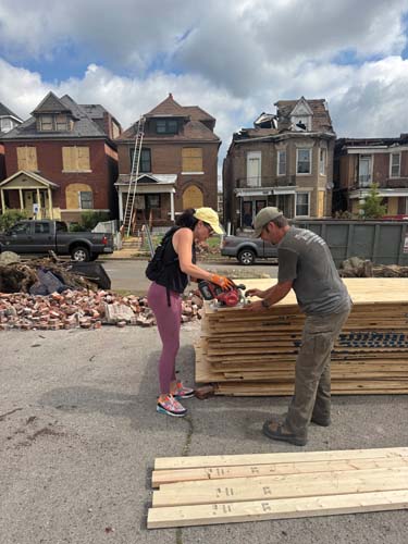 Support from the community has been instrumental to making the recovery efforts possible. Rand notes that she couldn’t do it on her own. Brooke Meek, founder of PLNK Fitness, and a team of her instructors have been instrumental in helping, the Forsyth School community has continued to organize volunteers and contractor Wesley Klaus of Modern Masonry and Restoration has been offering services for free to those impacted. “We’ve been on Enright Avenue for more than two weeks,” Rand says. “The people here are in need of bigger and badder help, and we can’t leave until that help arrives.”