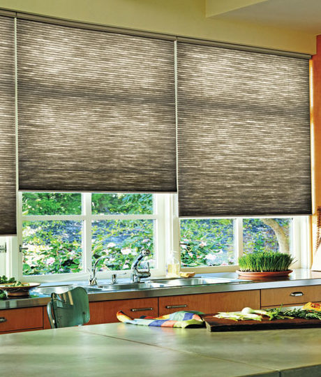 One example is the Hunter Douglas Duette Architella Honeycomb shade, which contains a ‘honeycomb-inside-a-honeycomb’ design to create three insulating pockets of air. This reduces both heat and cold loss at the window to help keep your home cool in the summer and warm in the winter. And you can get an energy efficient tax credit.
