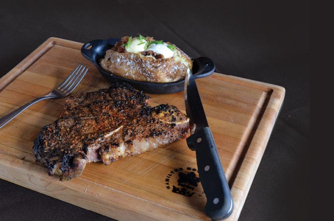 the dish | Kansas City strip steak with loaded baked potato