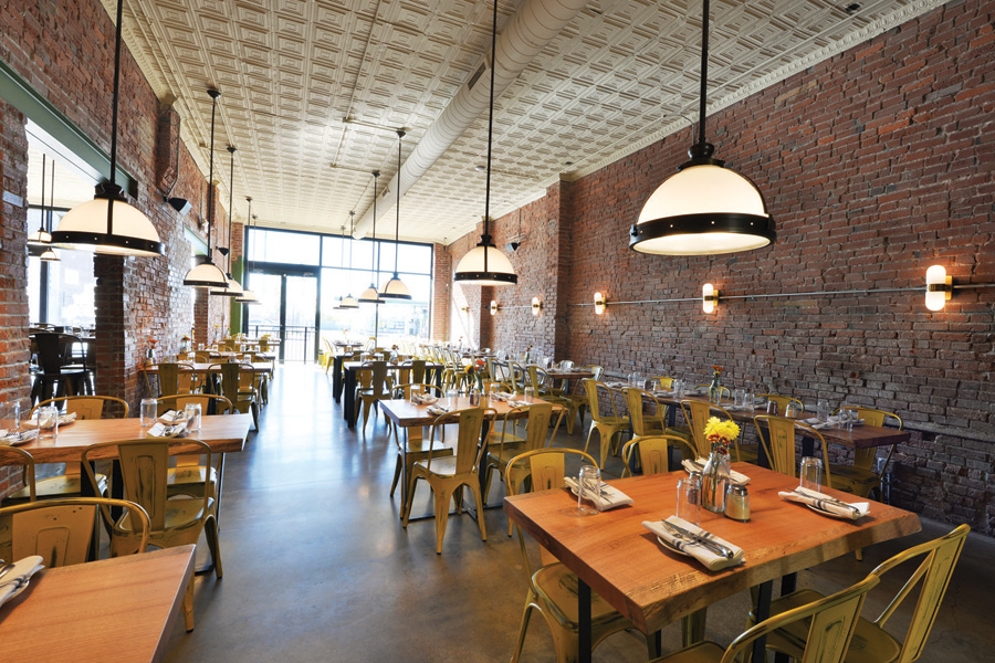 David Bailey has scored another win with his new spot, Hugo’s Pizzeria. Located across the street from Pappy’s and Southern, it continues his tradition of focusing on house-made items, which here include condiments, pepperoni, bacon, mozzarella cheese and, of course, pizza crust. Formerly Good Pie, the interior is now sleek with a lively bar room, large dining room and attractive outdoor patio. The walls are exposed brick, and a bank of large windows looks out onto Olive Street. The wood tables are a mix of standard and high top, and the chairs offer bright pops of color.