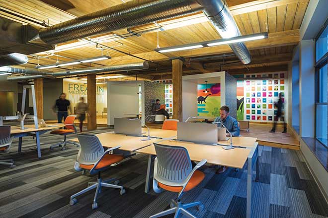 Meanwhile, the T-REX technology incubator in downtown St. Louis is in growth mode, too. It’s undergoing an $8 million capital campaign to outfit more office space so additional startups can move in, says Kathleen Bauer, community director. T-REX is located in Washington Avenue’s historic Lammert Building, built in the 1890s and retrofitted to accommodate high-tech tenants.