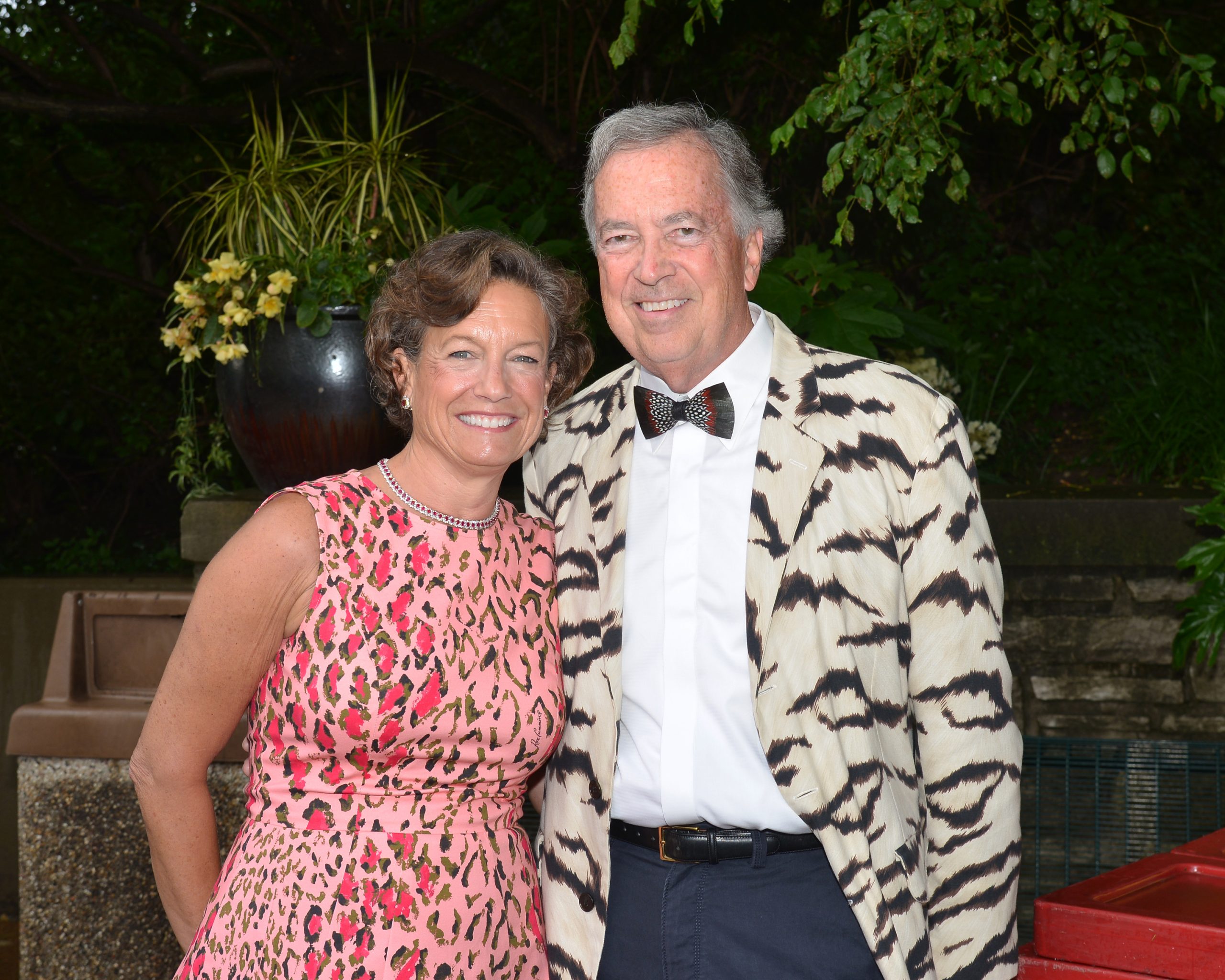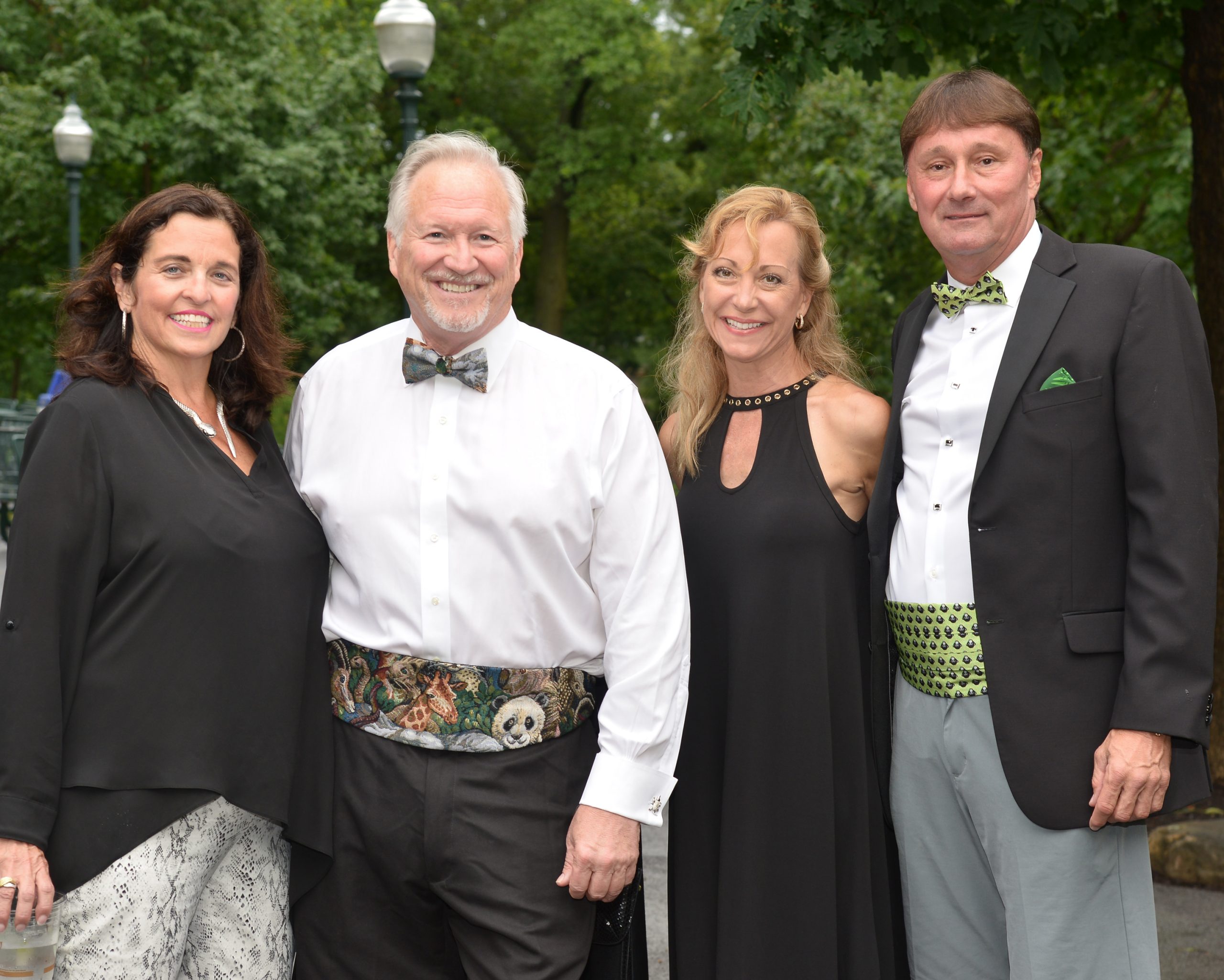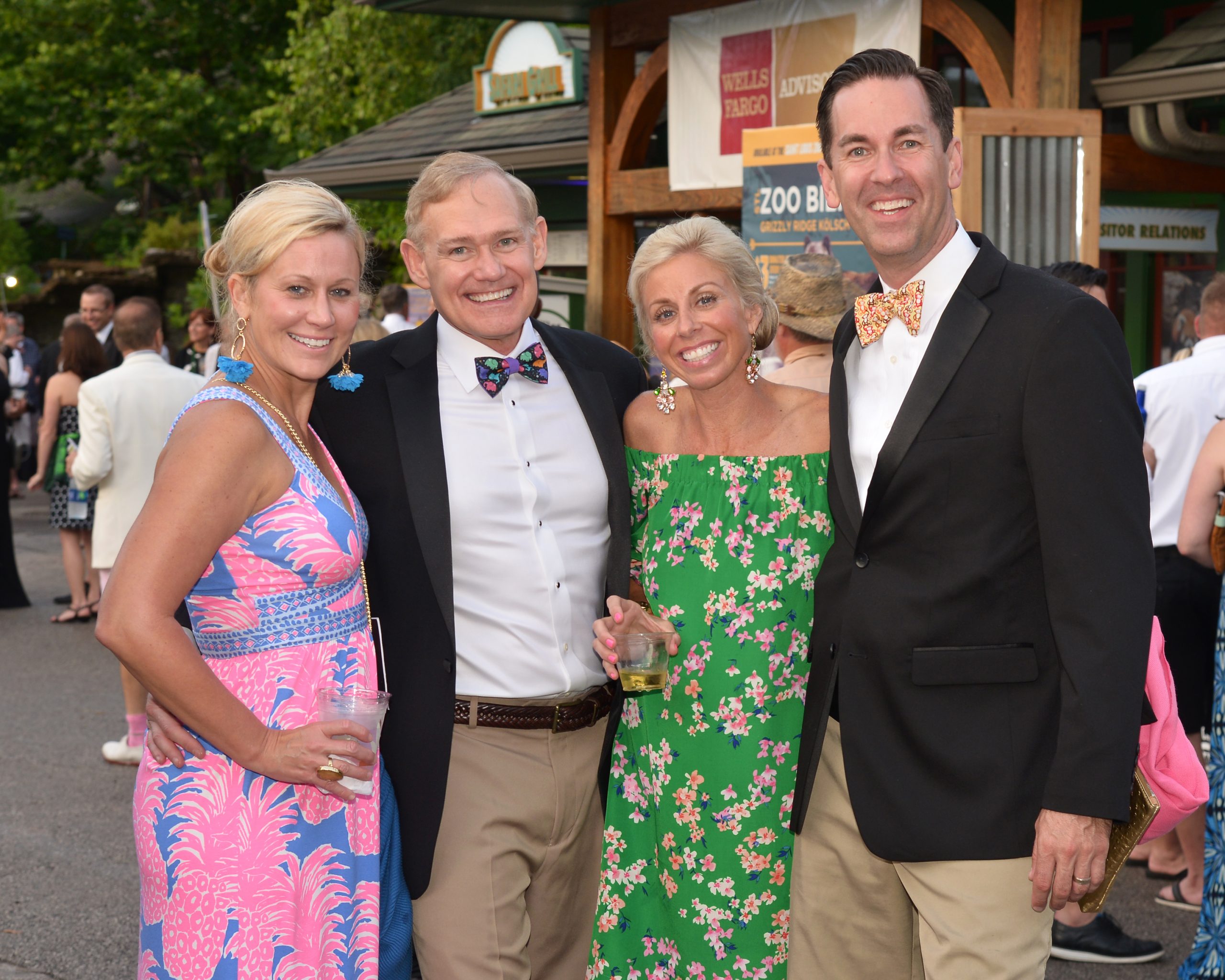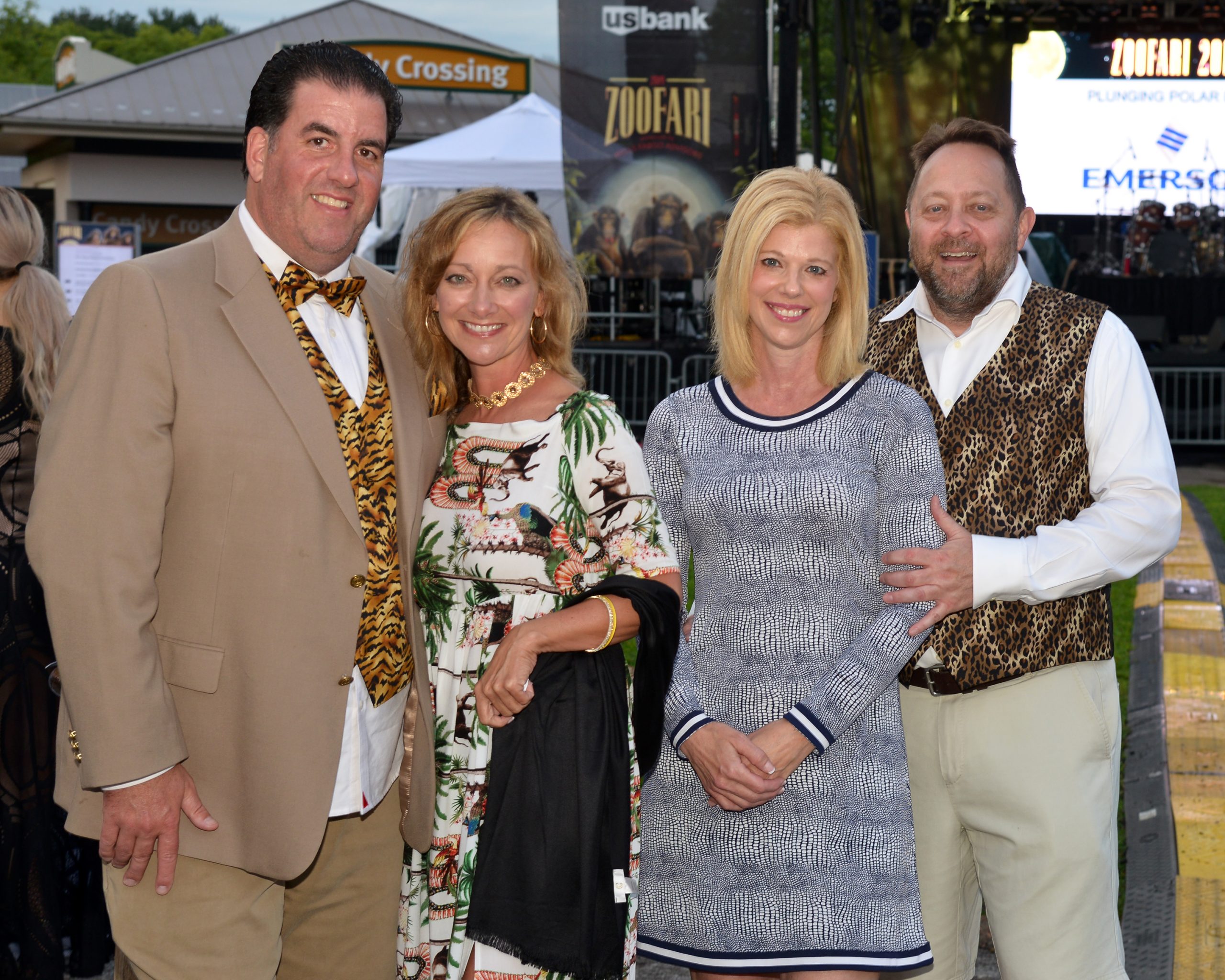 Guests flocked to the zoo in festive attire for the biennial fundraiser, Zoofari 2019 presented by Wells Fargo Advisors, which helps its efforts to save endangered species at home and around the world. More than 60 venues were on hand to offer food and drinks, and attendees danced under the stars to musical entertainment by numerous bands, including Starship featuring Mickey Thomas. [VIP Guests] President and CEO Dr. Jeffrey Bonner, event co-chairs Judy Kouchoukos and Matt Geekie, honorary co-chairs Judy and Jerry Kent, board president John Sondag.