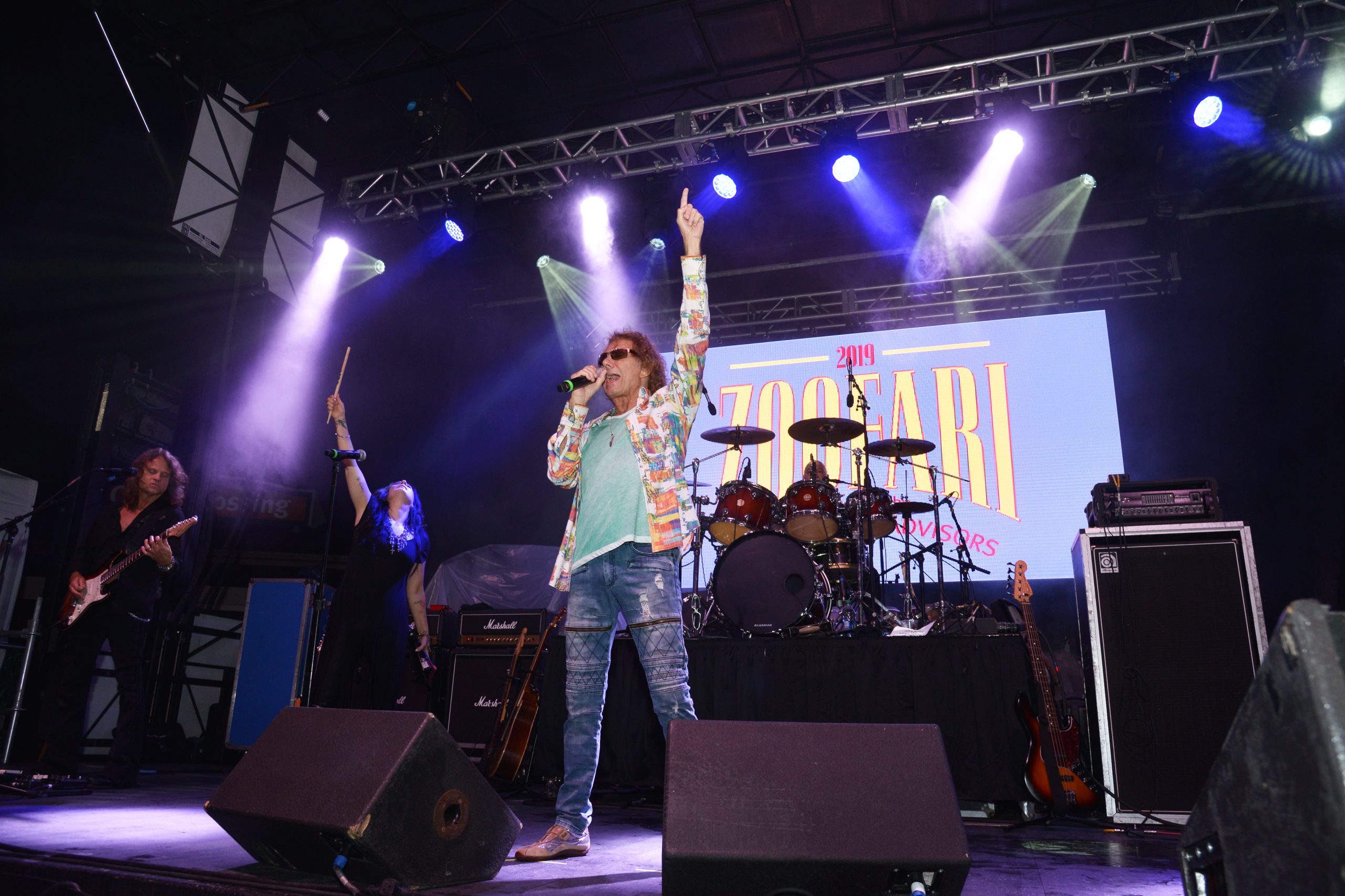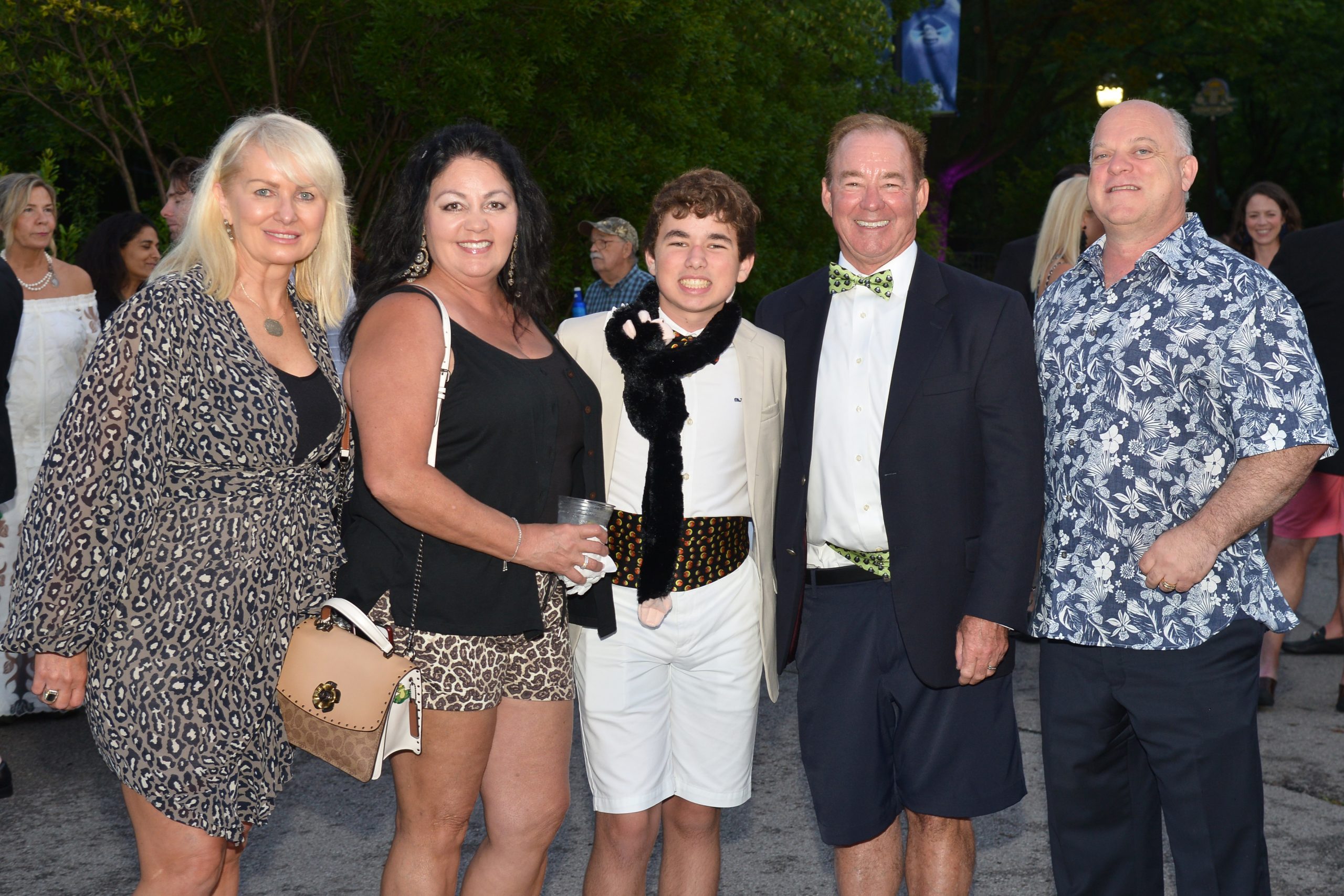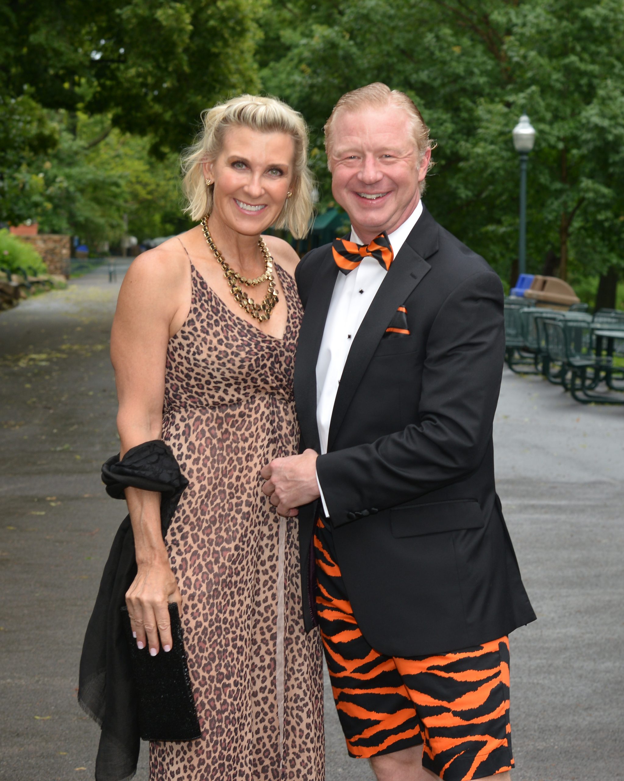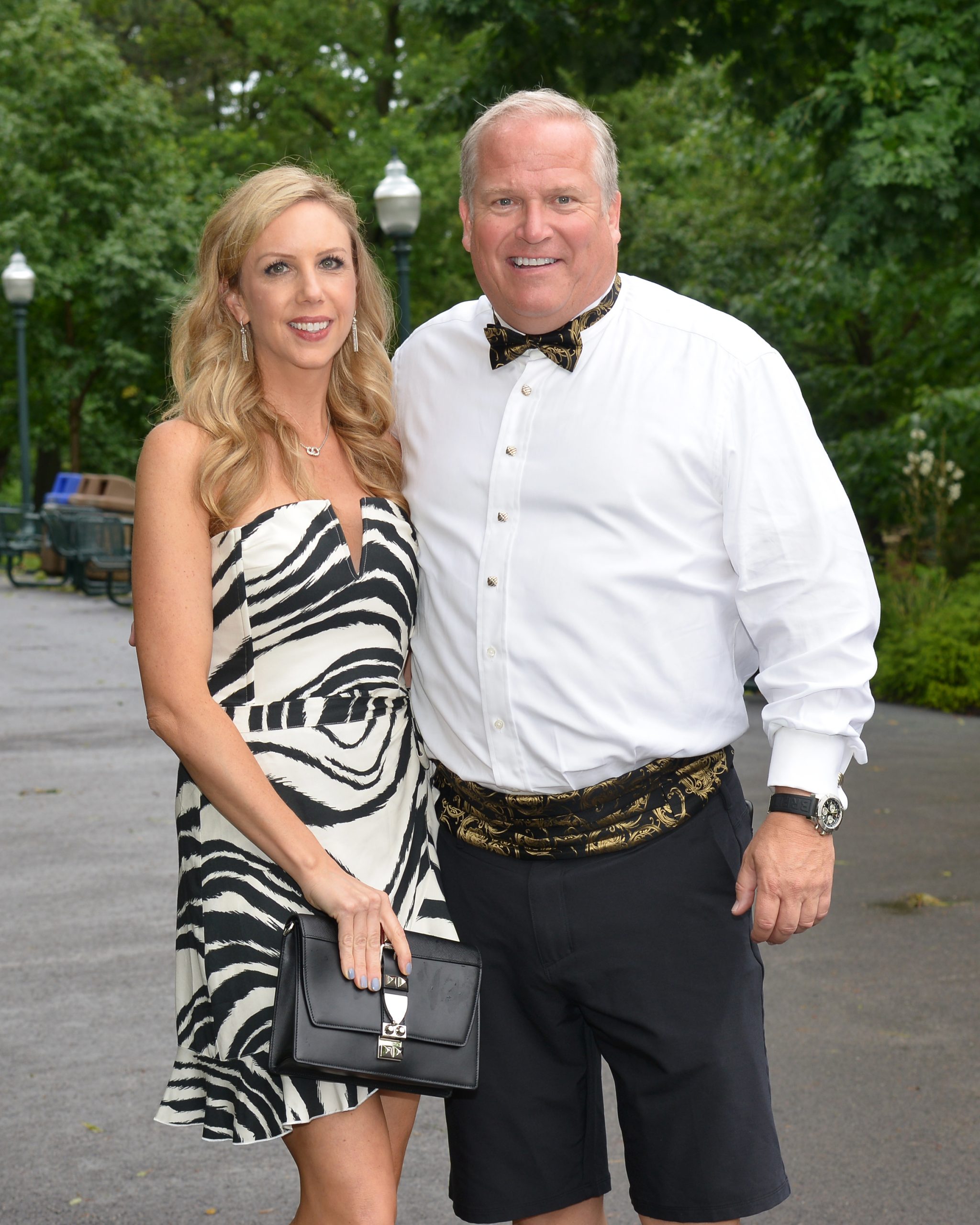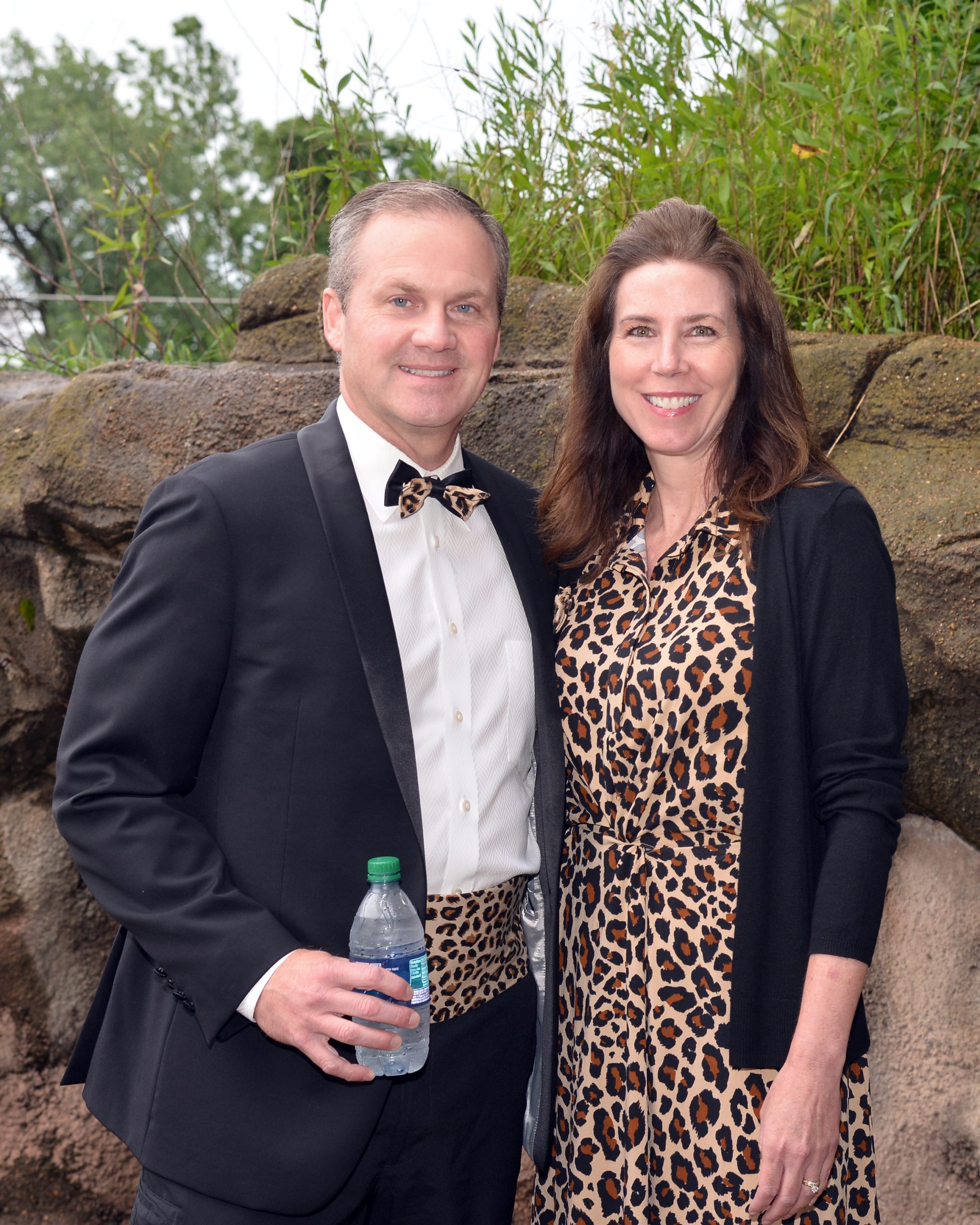 Guests flocked to the zoo in festive attire for the biennial fundraiser, Zoofari 2019 presented by Wells Fargo Advisors, which helps its efforts to save endangered species at home and around the world. More than 60 venues were on hand to offer food and drinks, and attendees danced under the stars to musical entertainment by numerous bands, including Starship featuring Mickey Thomas. [VIP Guests] President and CEO Dr. Jeffrey Bonner, event co-chairs Judy Kouchoukos and Matt Geekie, honorary co-chairs Judy and Jerry Kent, board president John Sondag.