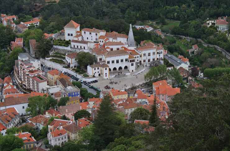 Pictured: View of Unesco World Heritage Center Sintra, Portugal, with its 9th-century Castelo dos Mouros at top